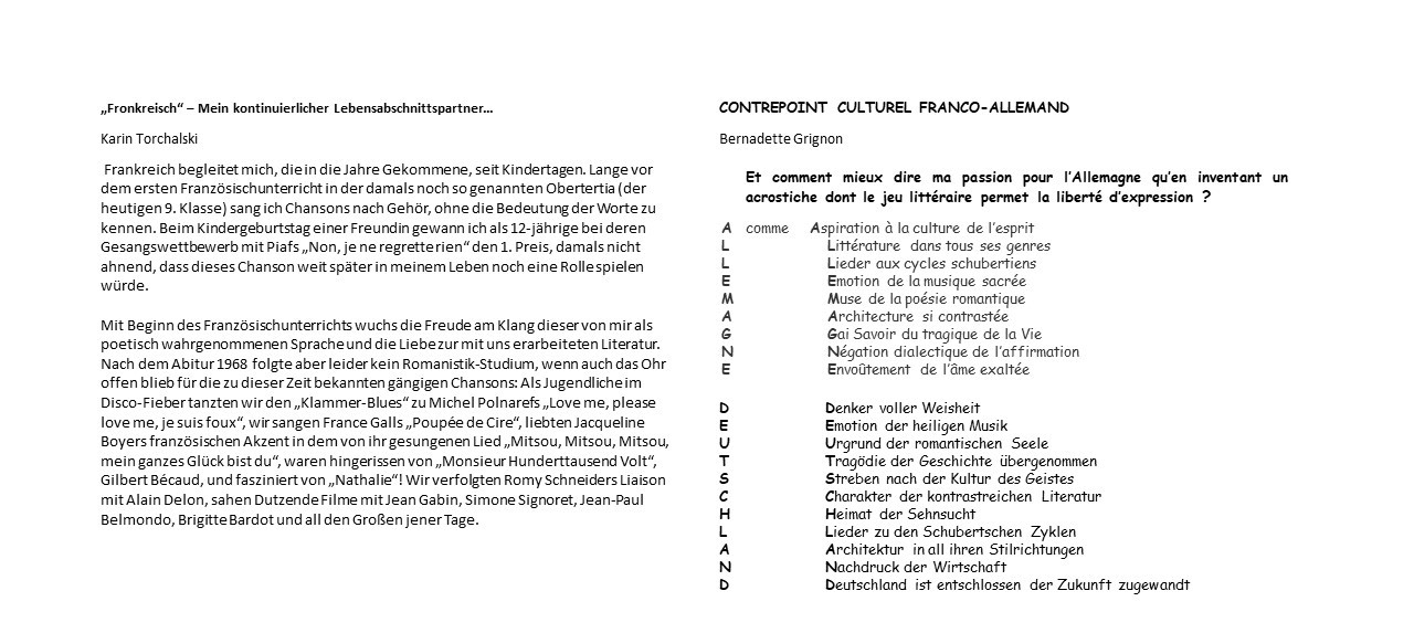 Die Deutsch-Französische Gesellschaft, deren Mitglied ich seit 10 Jahren bin, hält immer wieder neue Schätze französischer Kultur bereit; das beweisen die vielen interessanten und umfangreichen Informationen und Tipps in ihren regelmäßig versandten Voilà-Newslettern.