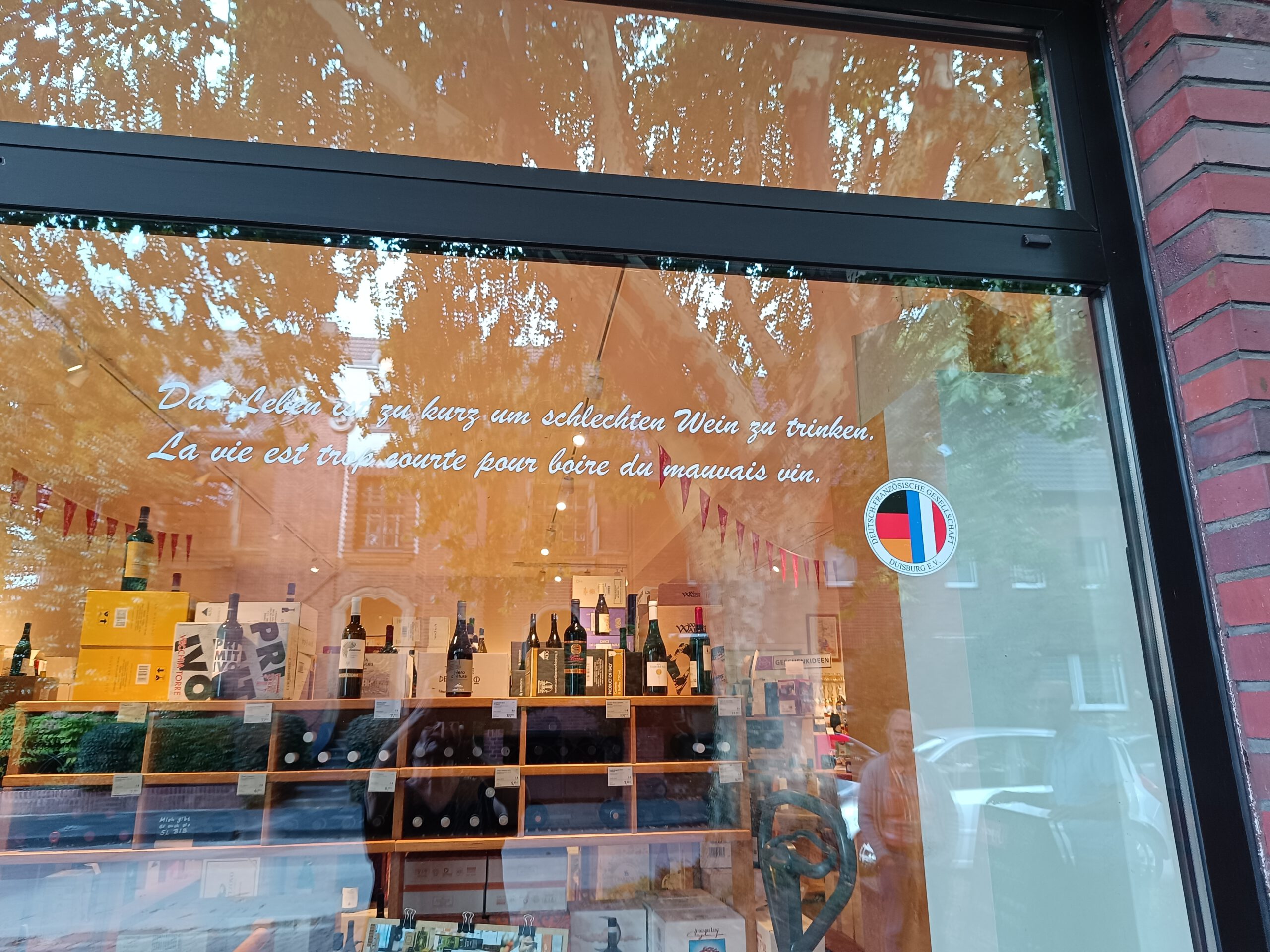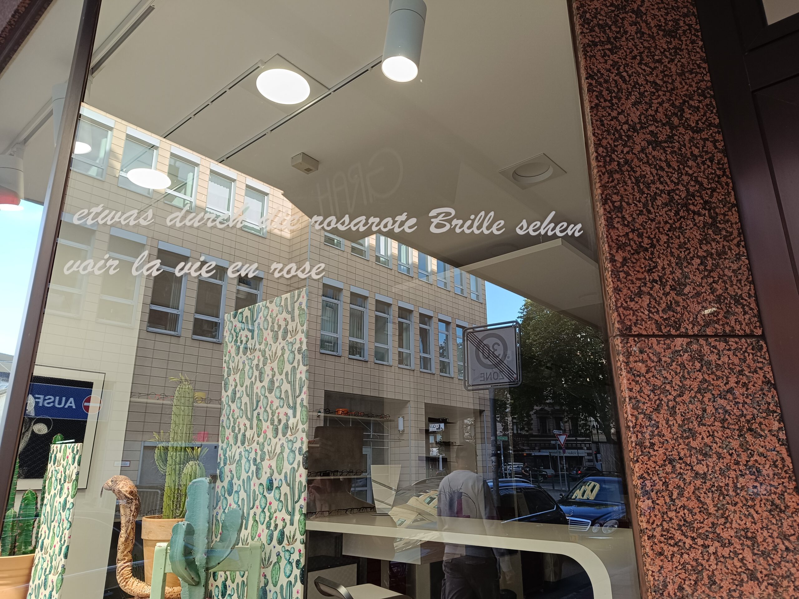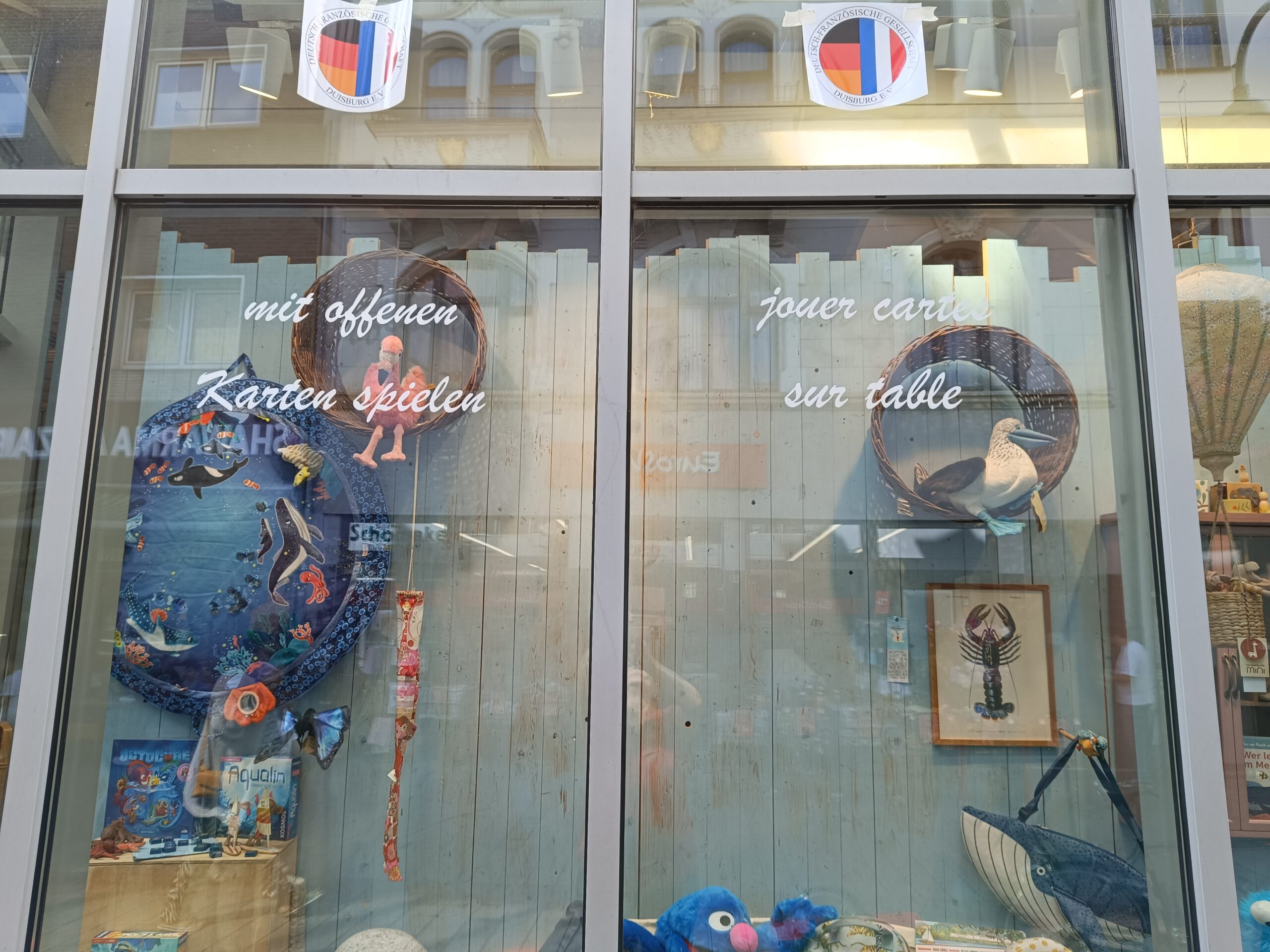🔎 In sechzehn Schaufenstern der Innenstadt hatten wir – in Kooperation mit den Händlern – deutsche Redewendungen kreativ in Szene gesetzt und mit dem passenden französischen Pendant dazu versehen. Zum Beispiel: Beim Schneider – “Verflixt und zugenäht!” – “Zut, alors!”.